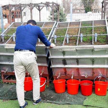 Sampling leachate from the lysimeter experiments, March 2023